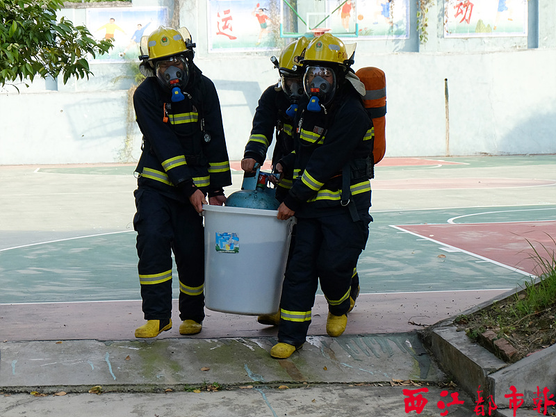 ????17時24分,梧州市公安局消防支隊長洲中隊到達現場并組織清理工作。消防官兵第一時間通知樓內居民撤至路口,同時,禁止其他居民進入。由于正值暑期,消防官兵遂將泄漏的液化氣罐移到梧州市第十五中學的操場,并找來大水桶裝滿水,將液化氣罐浸入水桶中打開氣閥放氣。