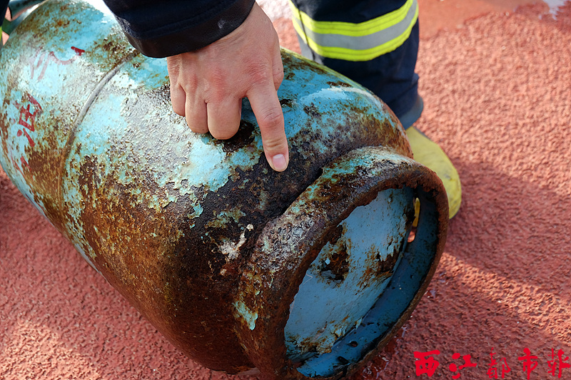 整個氣瓶銹蝕非常嚴重。 西江都市報記者 何鎏/攝