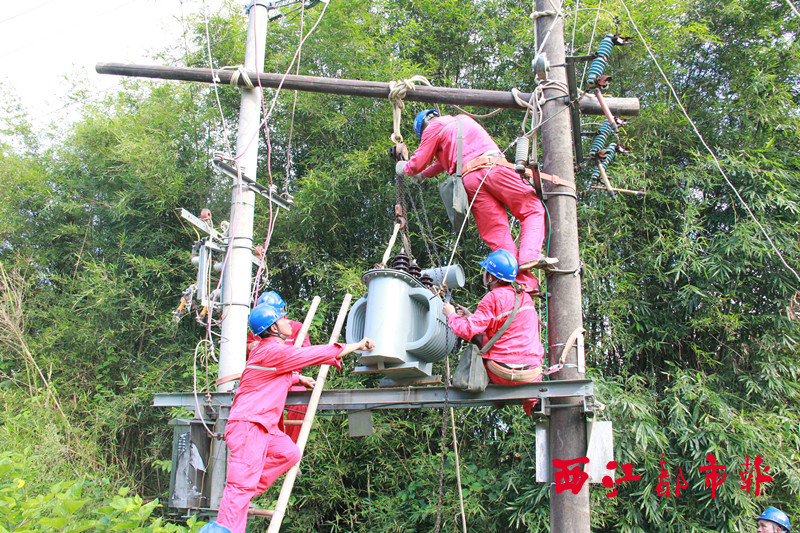 ????當天上午,因負荷猛增,四聯村朝東臺區變壓器被燒壞,全村400多戶斷電。蒙山電力公司接報后立即派出突擊隊搶修,從縣城調運來新變壓器,把被燒壞的變壓器換下,斷電區域當天恢復了正常供電。 (江永錄/攝)