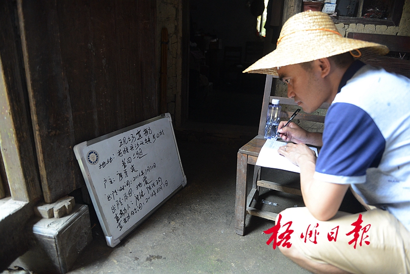 8月1日,在蒼梧縣沙頭鎮參田村,蒼梧縣住建部門工作人員在村民家中核實登記房屋受損情況。李鴻榮 攝
