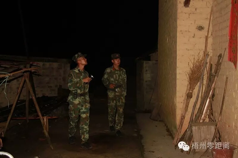 武警官兵們檢查參田村房屋受損情況,查看是否有人員沒有轉移