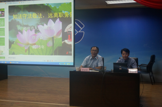 ????為教育引導全行員工進一步鞏固廉潔防線,堅守拒腐防變底線,結合正在開展的員工行為專項治理“回頭看”活動工作安排, 7月28日晚,建行梧州分行邀請市人民檢察院職務犯罪預防局覃宏森副局長為分行全體員工就預防職務犯罪舉行專題知識講座。