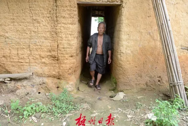 86歲的老兵胡朝南,精神抖擻地站在村里的泥土房中。
