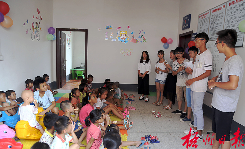 ????今年暑假期間,廣西大學、廣西民族大學、廣西師范大學等高校的蒙山籍大學生返鄉參加“關愛留守兒童,奉獻青春智慧”主題活動,豐富孩子的假期生活。關新 攝