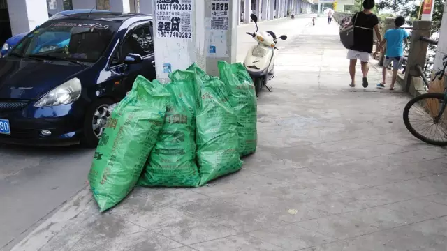 ??? 8月8日,在鴛江路路邊,每隔幾十米,就能看到這樣的一堆蛇皮袋,里邊裝著的正是在邊坡草叢里清理出來的生活垃圾。