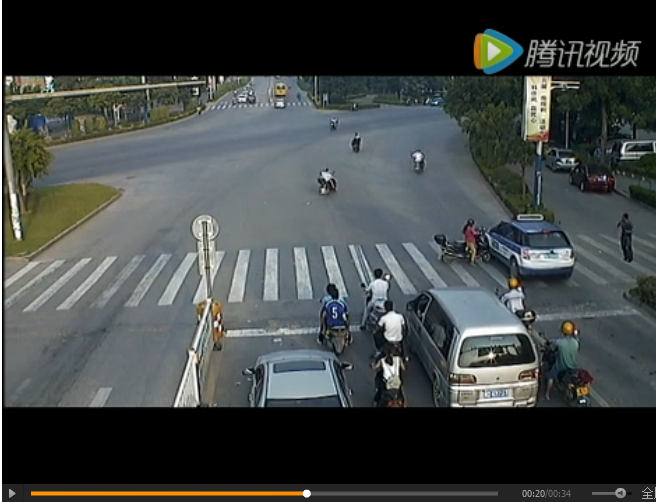 ????視頻中,電動車橫過馬路,而摩托車屬于直行車輛,可優先通過。電動車安全、正確的通過方式是下車推行,同時注意觀察直行方向有沒有車輛,然后通過。視頻中,電動車開到馬路中間才發現直行方向來車,即使馬上停下也躲避不及。在這起事故中,電動車雖然行駛速度不快,但沒有注意觀察直行方向的來車,加上橫過沒有標線的路段沒有下車推行,雖然被撞,也要承擔部分事故責任。