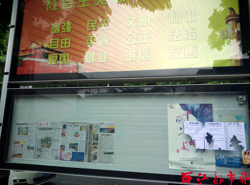 西江都市報(bào)訊(見(jiàn)習(xí)記者 陳雨燕)“公共閱報(bào)欄是給我們市民看報(bào)了解新聞的,被貼上這么多小廣告,我們還怎么看報(bào)紙?”8月12日上午,記者途經(jīng)新興一路的一處公共閱報(bào)欄,一位正在看報(bào)的市民反映:“這些人太不文明了,這小廣告像狗皮膏藥一樣遮住了新聞報(bào)道。”原來(lái),市民黃阿姨習(xí)慣每天買菜途經(jīng)閱報(bào)欄時(shí),看看當(dāng)天的報(bào)紙有什么新聞,但是逐漸“爬上”閱報(bào)欄的小廣告遮住了部分報(bào)紙,讓黃阿姨無(wú)法完整地閱讀。