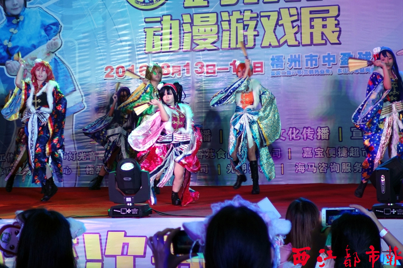 8月13日,由動漫愛好者扮演的各色動漫人物在臺上進行表演,吸引不少市民前來觀看。當天,梧州動漫愛好者自發組織2016年梧州跨次元動漫游戲展活動,這成為愛好者們交流愛好、展示自我的一個平臺。西江都市報記者 謝韻/攝