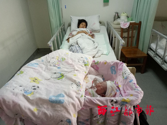 ?8月14日,吳福童產后和新生嬰兒在病房安穩入睡。楊淑華/攝