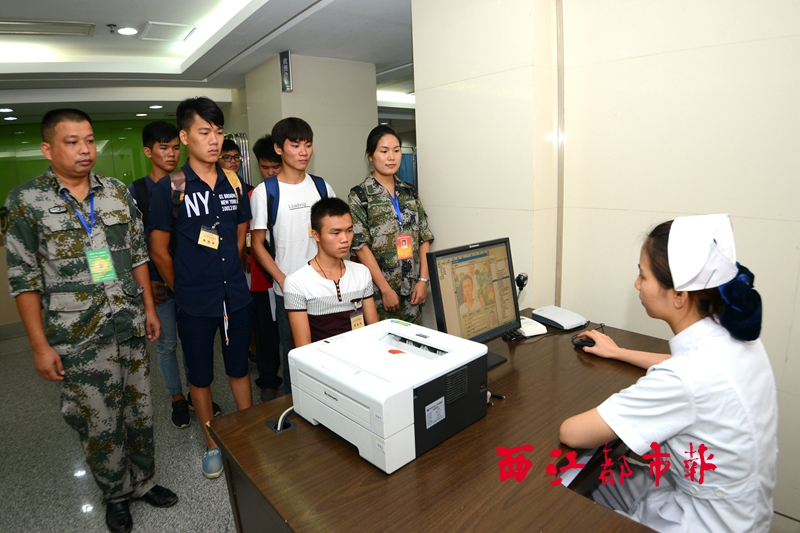 ??? 8月15日,龍圩區(qū)的適齡青年在梧州市紅會醫(yī)院進(jìn)行信息化采集錄入。