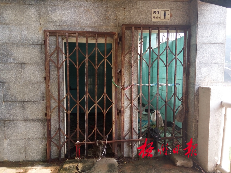 位于歷史文化長廊附近防洪閘門外的公廁大門緊鎖,垃圾遍地。曾燕 攝