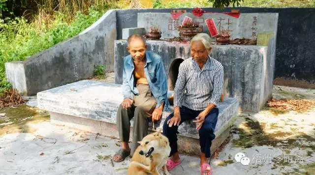 ????兩位老人坐在村社中,愛犬阿旺在膝下歇息