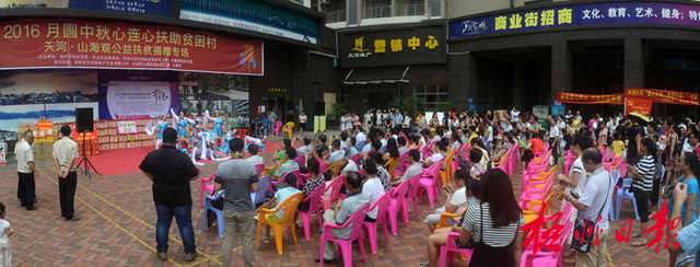 ????梧州日報訊 (記者 全淦枚 攝影 麥朝樞)8月27日上午,天河·山海觀小區商業廣場上人聲鼎沸。在中秋佳節來臨之前,讓貧困家庭感受到節日的氣氛,由梧州日報社黨委、市女企業家協會、市非公經濟和社會組織黨工委、共青團梧州市委等單位聯合主辦的“愛心直通車”2016月圓中秋心連心扶助貧困村——天河·山海觀公益扶貧捐贈專場活動在此熱鬧進行。當天,愛心單位和愛心企業向10個貧困村和30戶社區困難家庭捐贈了面條、油、月餅等愛心物資,并進行義賣義診等愛心活動為社區群眾服務。