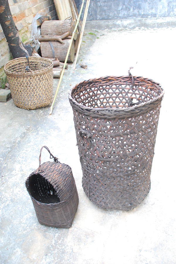 圖為六堡鎮黑石村茶農使用的裝茶工具。(記者 楊麥/攝)