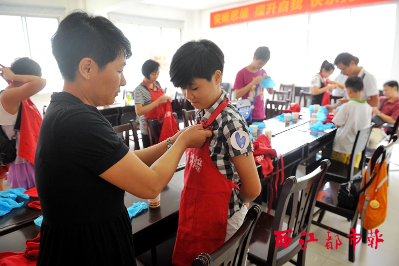 參與家庭按照衛(wèi)生規(guī)定穿戴好圍裙、頭罩和鞋套。