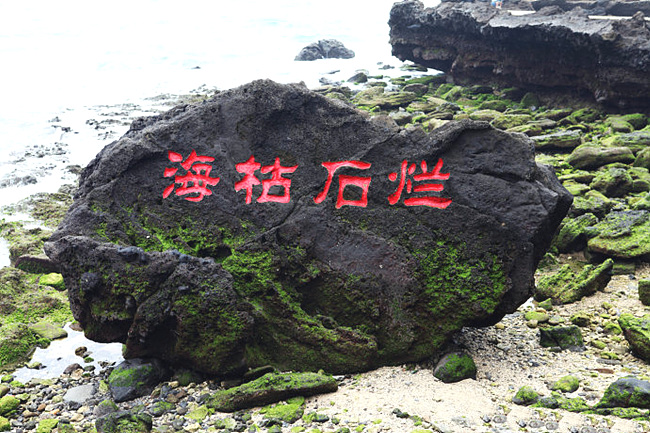 在月亮灣,一塊大石頭上刻著“海枯石爛”。