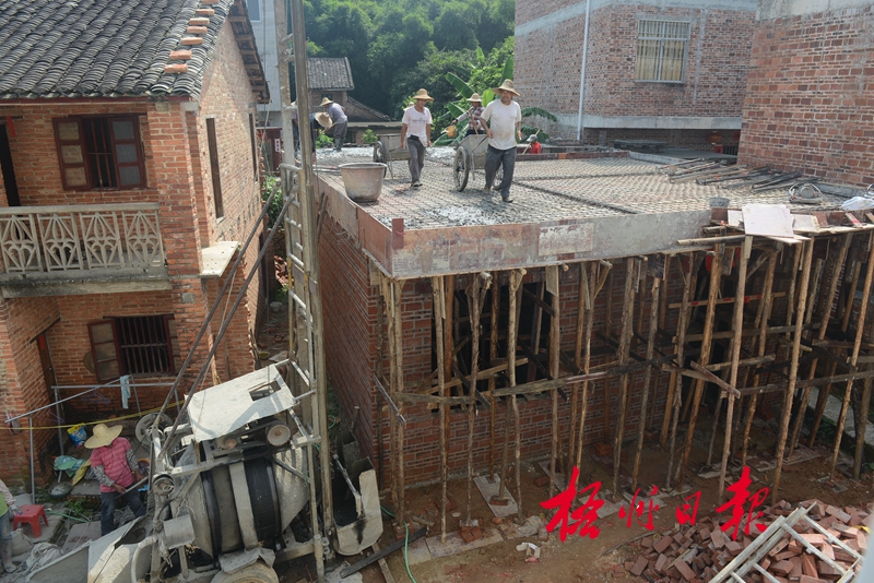 ??? 8月29日,在萬秀區(qū)夏郢鎮(zhèn)鳳凰村,一戶貧困戶的新居正澆筑層。