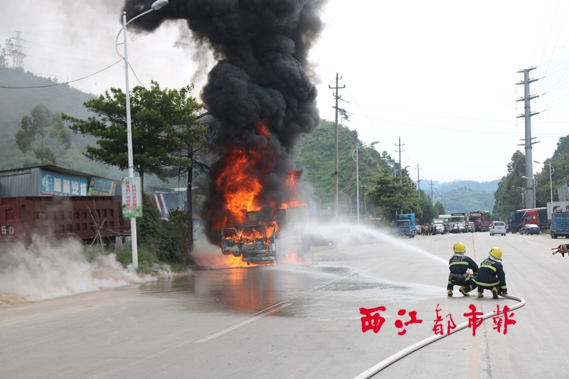 ????5分鐘后,河西中隊(duì)到達(dá)現(xiàn)場(chǎng)。經(jīng)偵查,仙風(fēng)山轉(zhuǎn)盤路口處一輛行駛中的小貨車,貨箱內(nèi)運(yùn)輸?shù)牟裼推鸹?。中?duì)指揮員立即組織撲救工作,雖然著火車輛停于路邊,但是由于該路段交通較繁忙,車流量較多,指揮員首先命令警戒小組在道路兩邊對(duì)過(guò)往車輛進(jìn)行警戒,防止阻礙滅火工作進(jìn)行以及避免二次事故發(fā)生,同時(shí),命令滅火小組用泡沫槍對(duì)著火車輛進(jìn)行兩邊圍堵滅火。