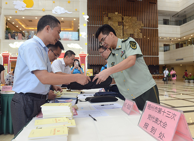 ????備受矚目的中國共產(chǎn)黨梧州市第十三次代表大會將于9月3日正式開幕。9月2日上午8時(shí)許,來自梧州市各縣市區(qū)、各行業(yè)領(lǐng)域的黨代表陸續(xù)來到大會駐地報(bào)到。