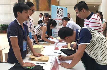 ????當日上午8時許,出席梧州市第十三次黨代表大會的代表陸續在報到處報到。