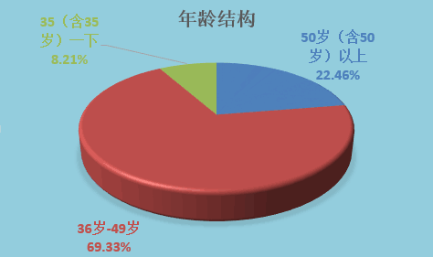 ????本次黨代會代表中,年齡結構與上一屆相比,更趨于年輕化。其中,50歲(含50歲)以上的黨代表104名,占22.46%;36歲—49歲的黨代表321名,占69.33%;占35歲(含35歲)以下38名,占8.21%。