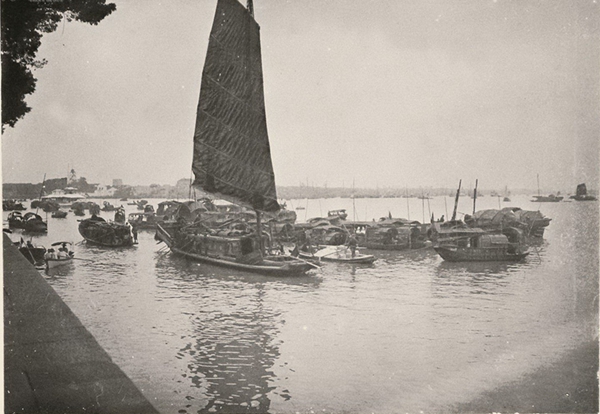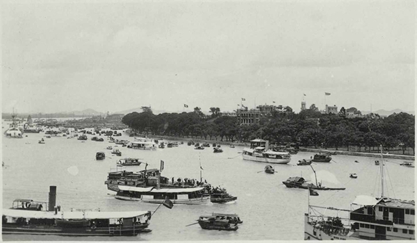 清末民初,行駛在廣州港珠江水域上的拖輪和“花尾渡”。(網友“食貨152157-”提供)