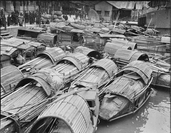 上世紀20 年代西江河段一處碼頭邊停泊的小船(網友“孫猴子”提供)