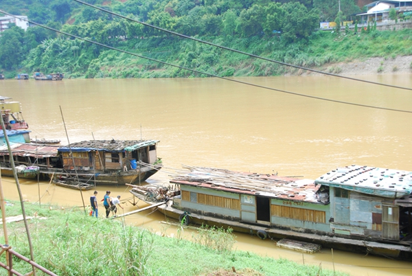 當時都城的碼頭上停靠有茶莊老板的大盤船。我們的船到了都城,與大盤船相距約十米,大盤船上的工人就用木板在兩船之間搭條過道,然后,他們過來我們船上,把貨品搬過去大盤船。那些大船是載貨幾十噸的木船,過完了茶葉也不馬上開走,它們還要在碼頭上等裝其他貨物,裝滿一船才會出發,然后就沿江而下到廣州去。