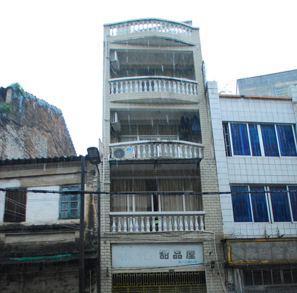 在江口鎮,三江口碼頭旁就是東方一路,這條老街道如今仍然保留有大量老房子。這條老街道有著明顯的廣府建筑設計特征——以一條街道為中軸,民宅修建在街道兩側,商鋪民居一般為小門面大進深,三角屋頂,頂層鋪設青瓦卸水。街里保存下來的老房子雖然大多已經破舊不堪,但結構依然堅固,從中可以看出當年建房時布局的緊湊,一派典型的嶺南“竹筒樓、嗶啪巷(意思是巷子狹窄)”構造風格。