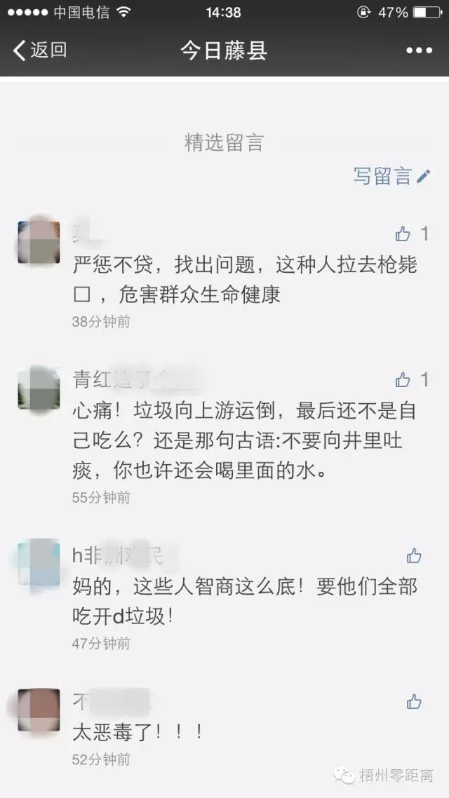 ????由于關系到藤縣的母親河,關系到縣城15萬人口供水的水源污染問題,因此藤縣的小伙伴都憤怒了,紛紛譴責不法分子的行為。