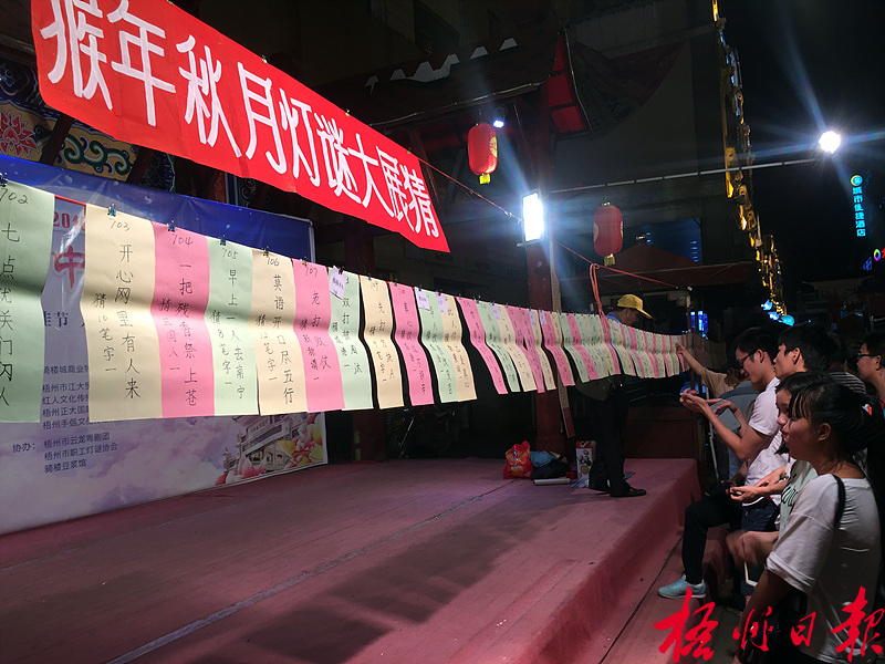 ????9月2日晚,在騎樓城商業特色街小舞臺,市民參與猜燈謎活動。