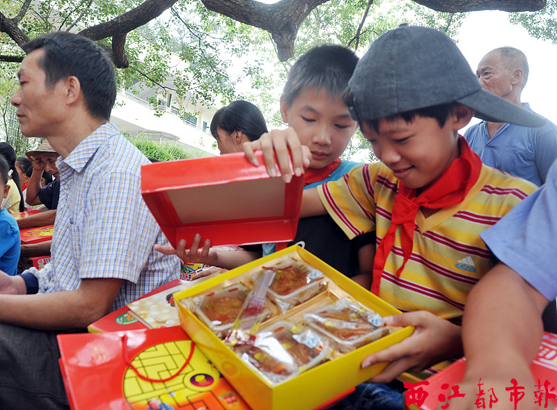 拿到愛心月餅后,貧困家庭的孩子喜上眉梢。西江都市報記者 陳健新/攝