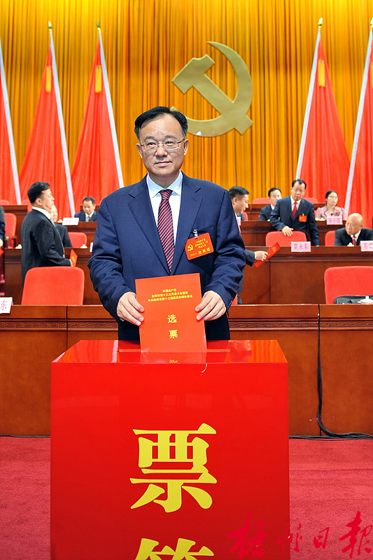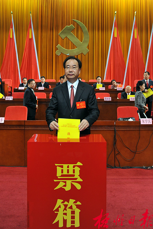 ????9月5日,朱學(xué)慶在中國(guó)共產(chǎn)黨梧州市第十三次代表大會(huì)上投票。????