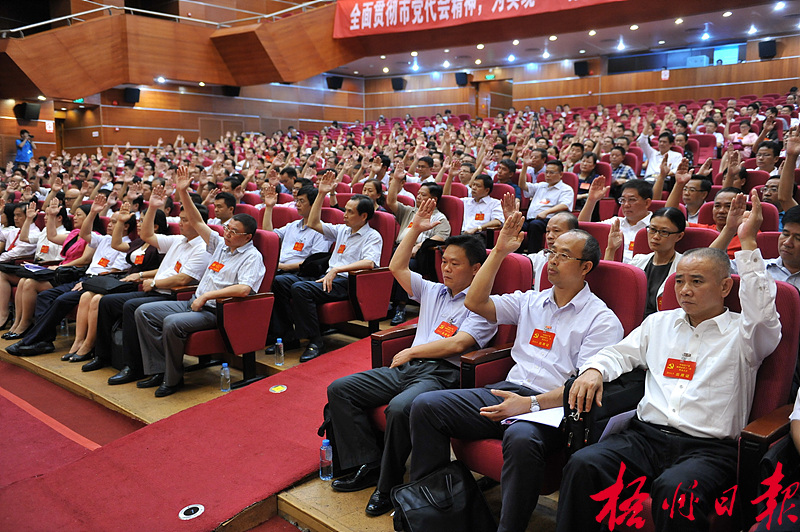 ??? 9月5日,梧州市第十三次黨代表大會(huì)舉行全體會(huì)議,代表們舉手表決,通過(guò)了《關(guān)于中國(guó)共產(chǎn)黨梧州市第十二屆委員會(huì)工作報(bào)告的決議》《關(guān)于中國(guó)共產(chǎn)黨梧州市第十二屆紀(jì)律檢查委員會(huì)工作報(bào)告的決議》。(本版照片由孟亞西攝)