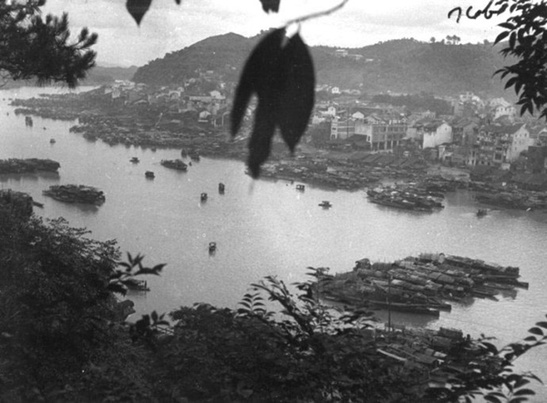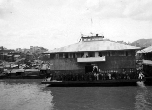 1928年7月,梧州西江上的浮動碼頭。(網(wǎng)友“小河蝦”提供)