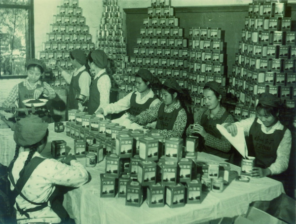 上世紀七八十年代,梧州茶廠工人在包裝出口的六堡茶。(梧州茶廠提供)