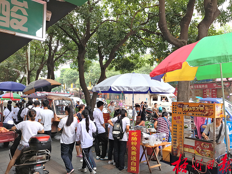 梧州一中高中部大門口周邊亂擺賣致道路擁堵