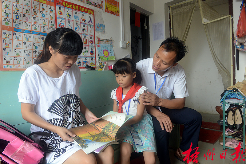 ????放學后,藍江永與妻子一起教女兒妞妞念書。