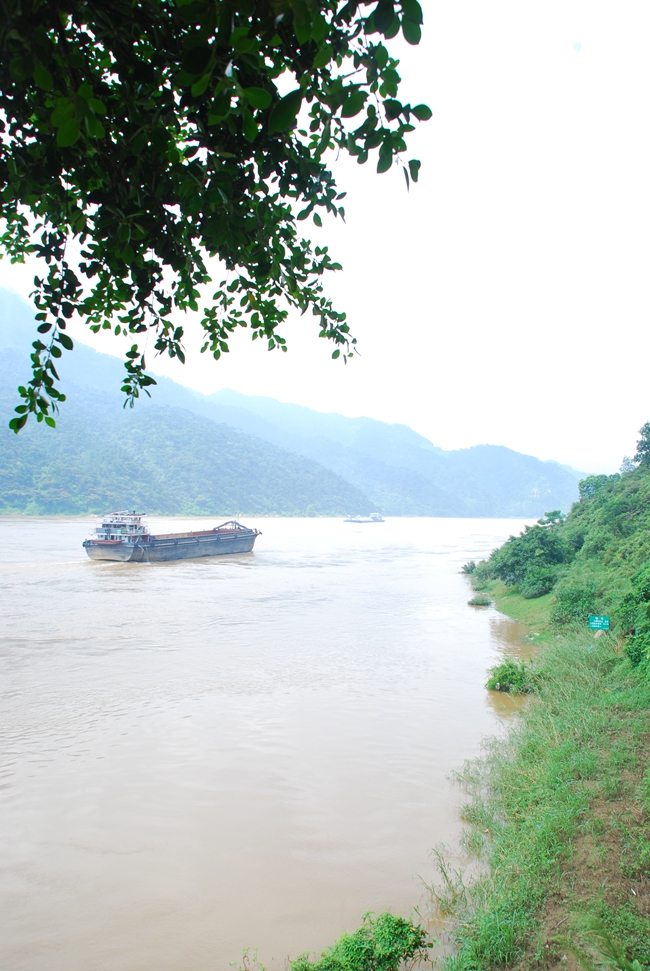 貨輪駛進羚羊峽。(記者 楊麥/攝)