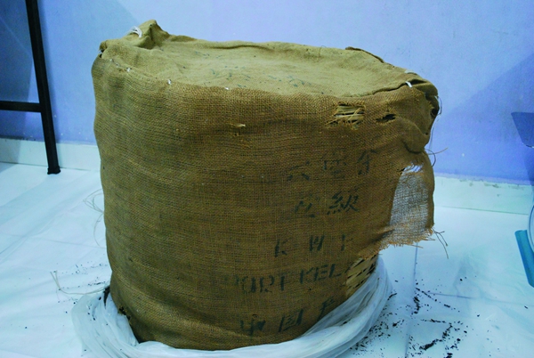 現(xiàn)存的上世紀(jì)70 年代末期出口到馬來西亞的六堡茶。(梧州中茶茶業(yè)公司提供)