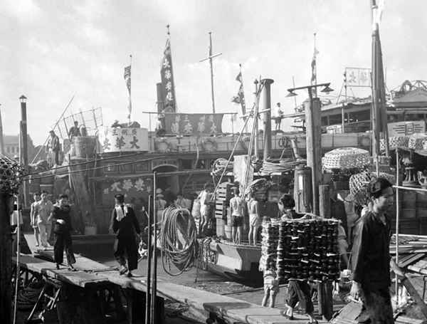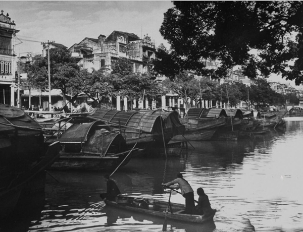 1949 年,廣州沙面河上的小艇,正準(zhǔn)備去接貨。(網(wǎng)友“一點又一點”提供)