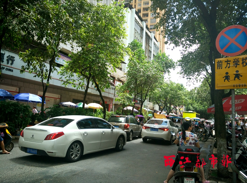 ????11時(shí)50分左右,已有不少家長來到梧州一中初中部校門接孩子放學(xué),這些家長都把摩托車、私家車停放在一中初中部門口對出路段。12時(shí),陸續(xù)有學(xué)生從校門走出,此時(shí)交通出現(xiàn)不暢,接學(xué)生放學(xué)的車輛越來越多,在道路兩邊都排起了長龍。部分開私家車前來接學(xué)生的家長,將車輛臨時(shí)停放在校門口旁的路邊等候。