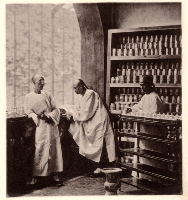 1870 年前后,廣州的茶商對準(zhǔn)備出口的茶葉進(jìn)行品評鑒定(據(jù)《鏡頭前的舊中國——約翰·湯姆森游記》)。(網(wǎng)友“廣州二哥”提供)
