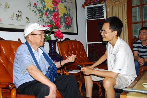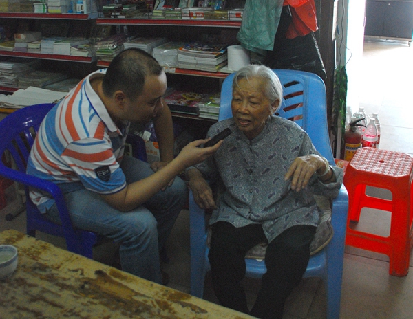 黃用珍(右)向西江都市報記者憶述當(dāng)年從新加坡嫁到蒼梧縣六堡鎮(zhèn)的往事。(記者 楊麥/攝)