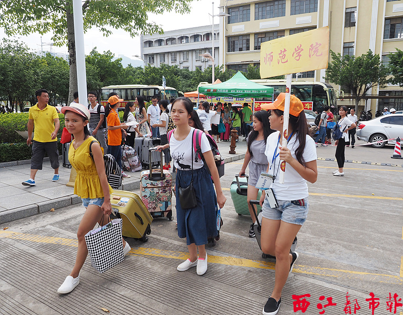 ????昨天,記者在梧州學(xué)院新生報(bào)名、注冊(cè)現(xiàn)場(chǎng)看到,這里搭起了多個(gè)帳篷并有序地分設(shè)成接待點(diǎn)、家長(zhǎng)休息區(qū)、行李放置區(qū)、通訊服務(wù)區(qū)等功能區(qū)域。在梧州學(xué)院迎新志愿者帶領(lǐng)下,新生們有條不紊地進(jìn)行學(xué)籍注冊(cè)、戶籍接收、交費(fèi)等各項(xiàng)工作,辦理好手續(xù)后,迎新志愿者還及時(shí)將新生引導(dǎo)至宿舍安頓。