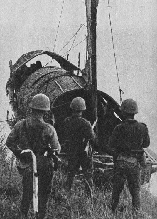 1939 年6 月7 日,侵華日軍在西江上搜查船只。(網友“田豐1052”提供)