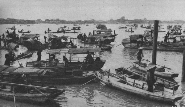 1939年10月,侵華日軍進入廣州,當時停泊在廣州珠江碼頭的船只四散逃難。(網友“田豐1052”提供)
