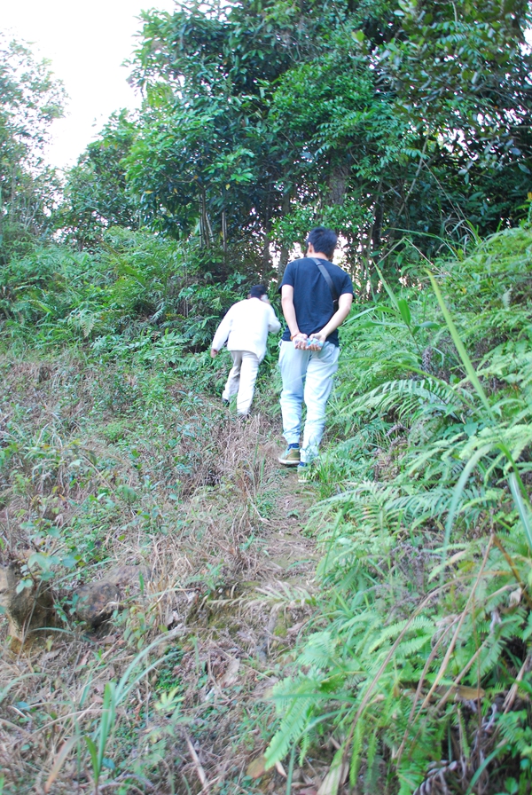 陳伯昌帶領本報記者走上當年羅華觀在四柳村扎寨的山間小道。(記者 楊麥/攝)