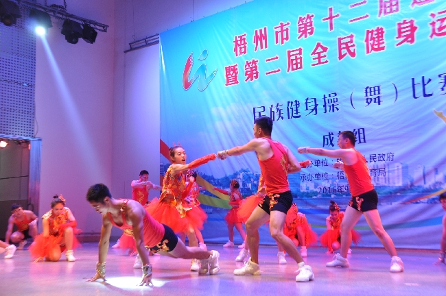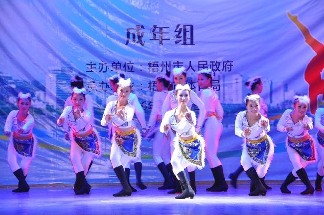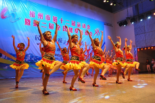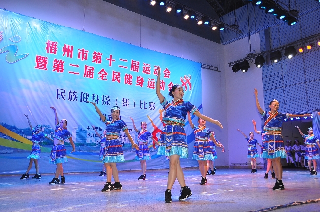 歡樂火把節(jié)—蒼梧縣代表隊在健身舞比賽中