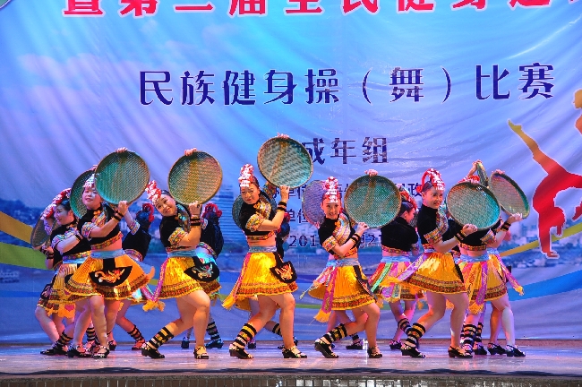 市民政局代表隊的健身操比賽節(jié)目《山歌牽出月亮來》